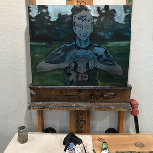 Once the tonal Ground is painted and my painting is mapped with some sort of pencil (I like using Stabilo all pencils as I can lay down in a color I can see.) I then use a complimentary color or dark shadow palate underpainting. To many clients these look strange so I often don’t show them. This helps me define the shadows and the places of light. In some places you will see dark colors that will only dance through the top layers. This once again brings visual depth. It all allows the colors of paint that are in the layers to dance with each other.